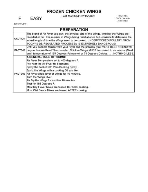 The brand of Air Fryer you own, the physical size of the Wings, whether the Wings are