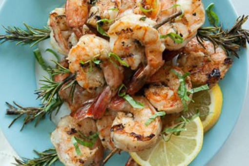 Spicy Grilled Shrimp skewered on Rosemary Sprigs. Adobo Seasoning is quite mild while
