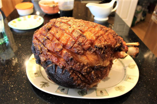 This recipe uses a high quality, whole, unsliced, Sugar Cured triple smoked Ham with