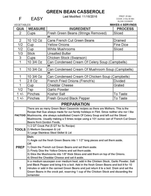 There are as many Green Bean Casserole recipes as there are Mothers. This is the