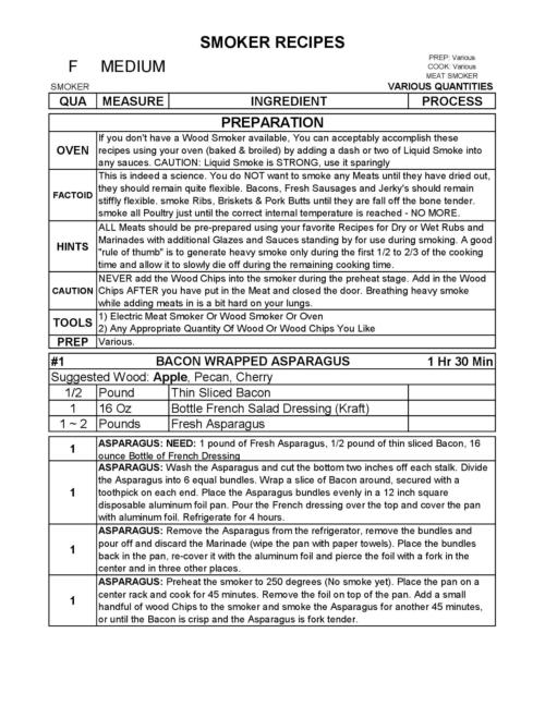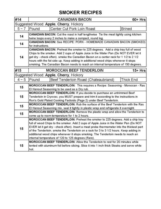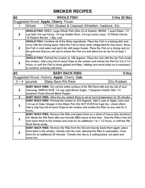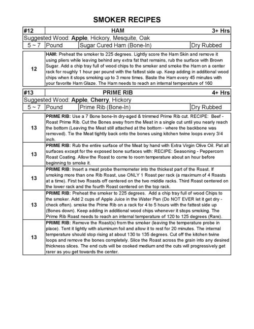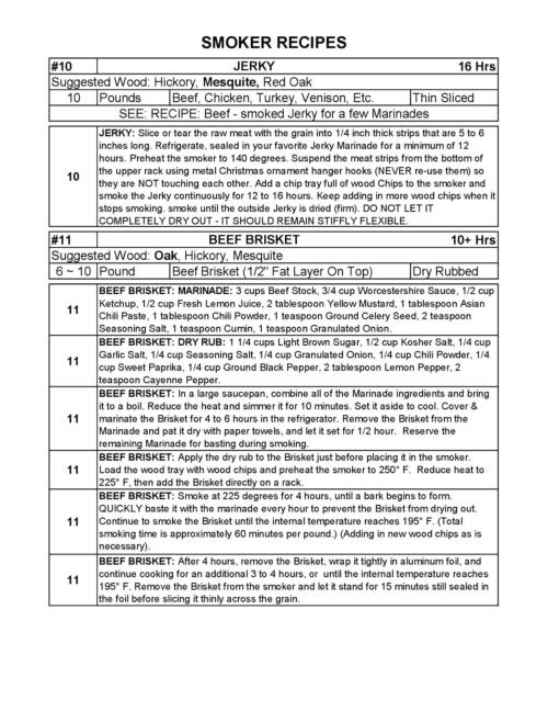 RATING: PREPARATION TIME: Various COOKING TIME: Various START TO FINISH: Various SMOKERS: ELECTRIC & WOOD