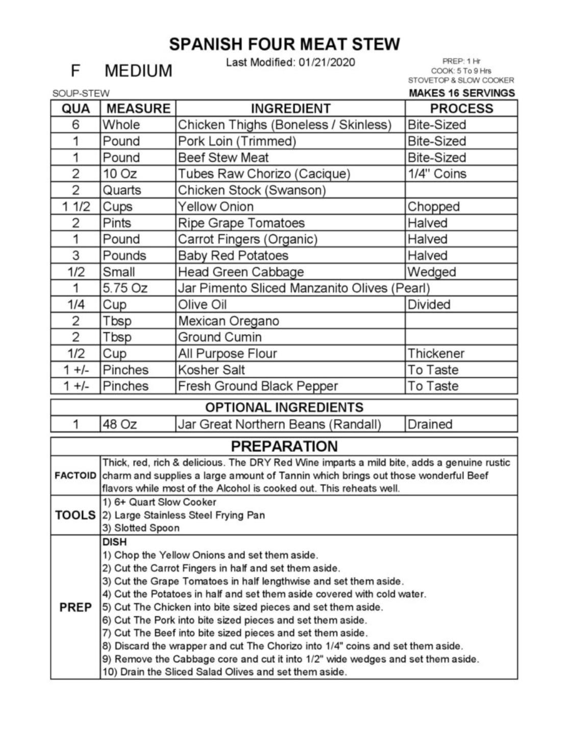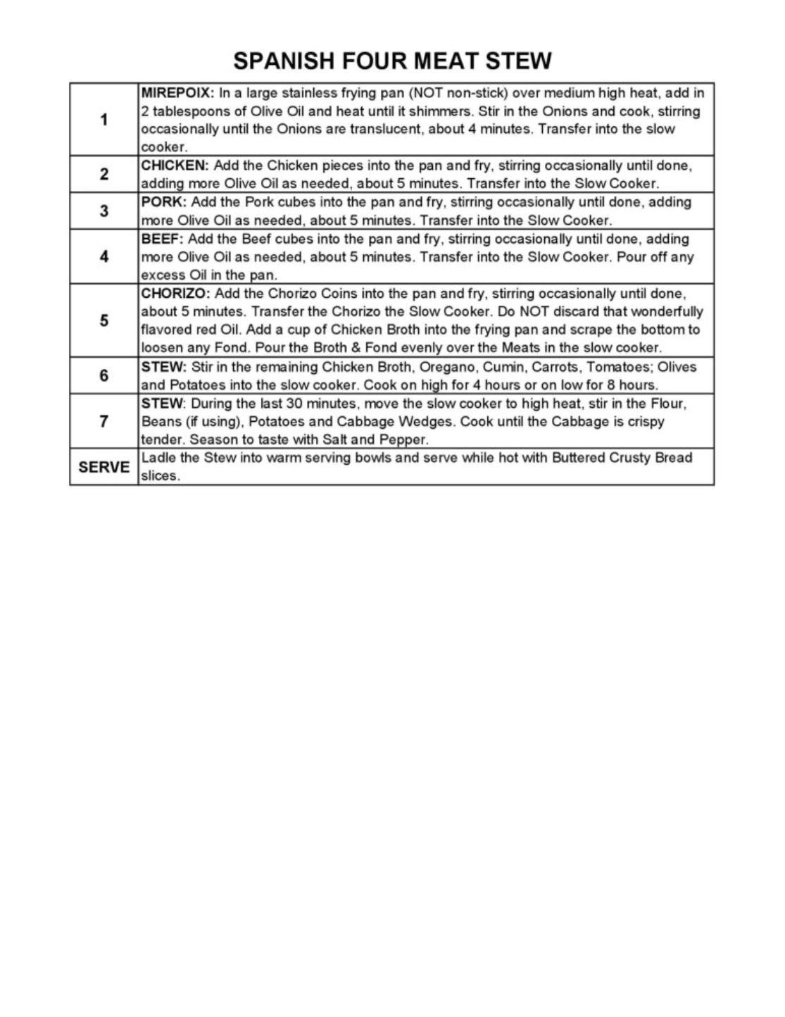 == SPANISH FOUR MEAT STEW - PG1 - Optional Ingredients == == SPANISH FOUR MEAT STEW - PG2 ==