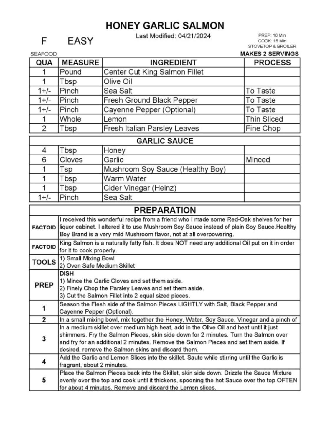 I received this wonderful recipe from a friend who I made some Red-Oak shelves for her