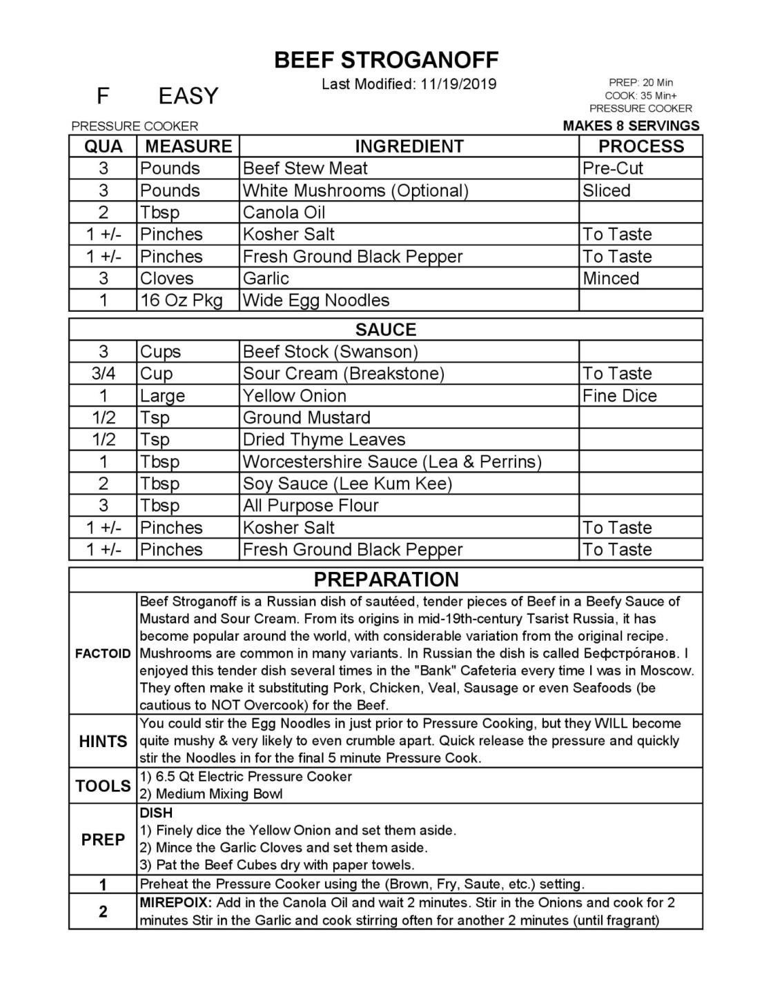 Beef Stroganoff is a Russian dish of sautéed, tender pieces of Beef in a Beefy Sauce of