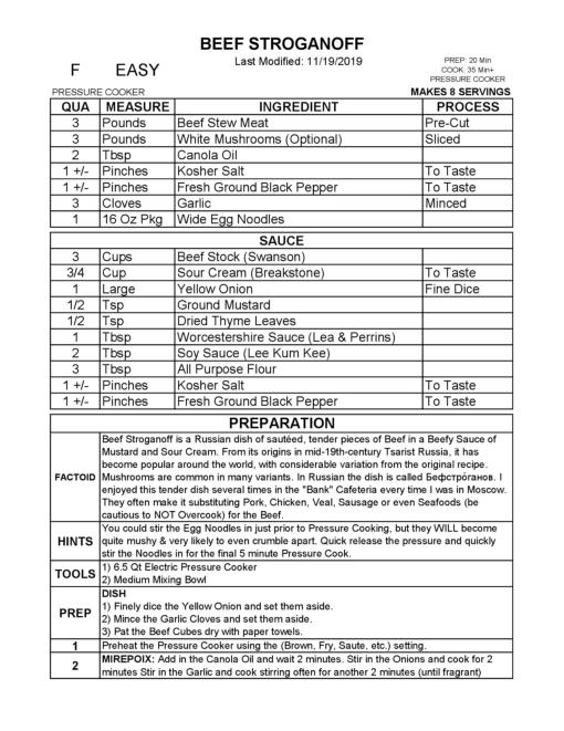 BEEF STRROGANOFF
