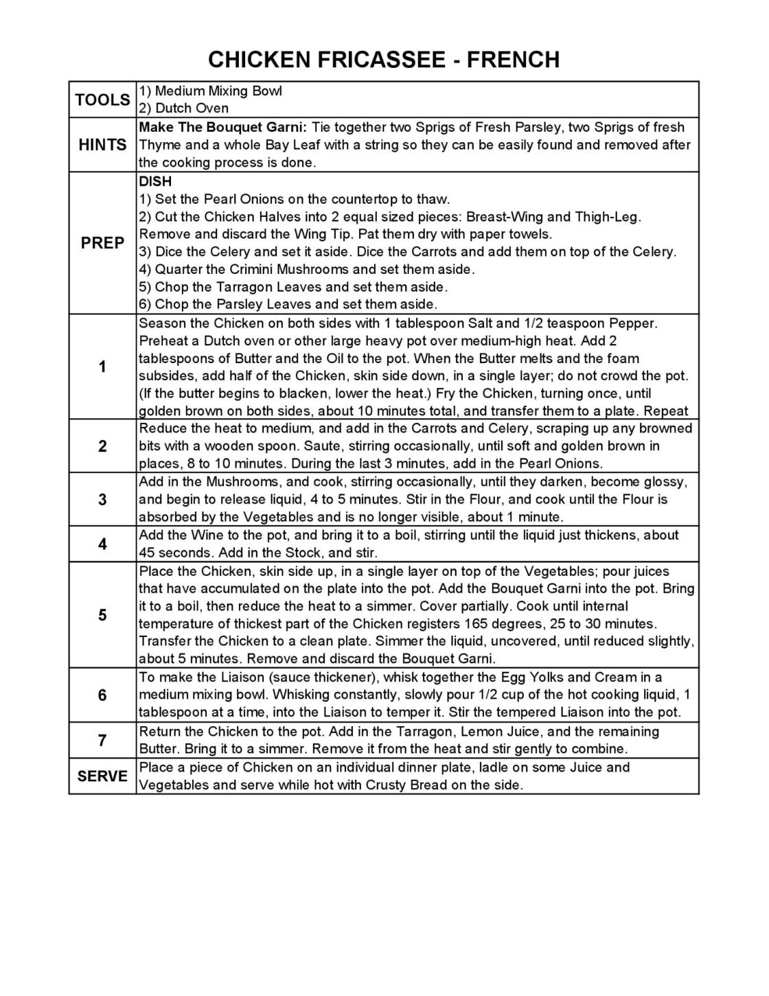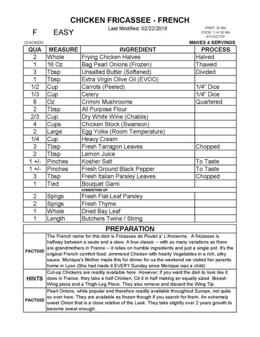 CHICKEN FRICASSEE - FRENCH