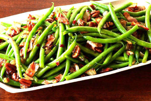 SHOESTRING GREEN BEANS WITH BACON & ALMONDS