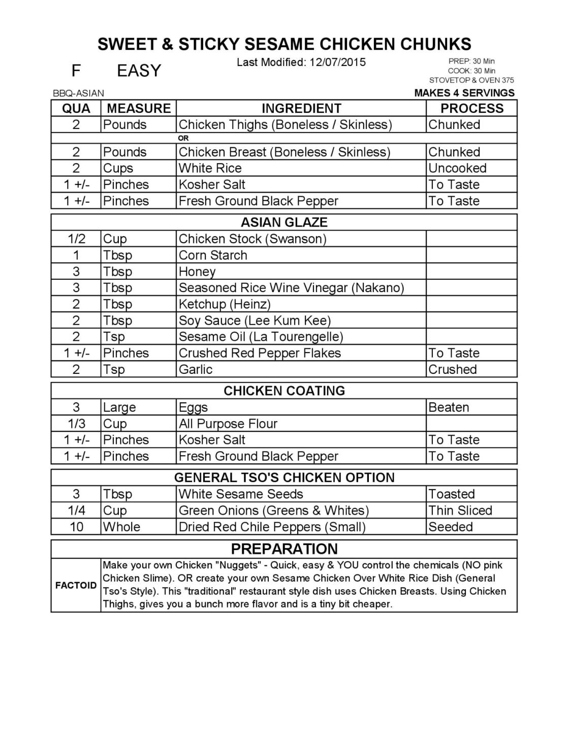 Tso's Style). This "traditional" restaurant style dish uses Chicken Breasts. Using Chicken