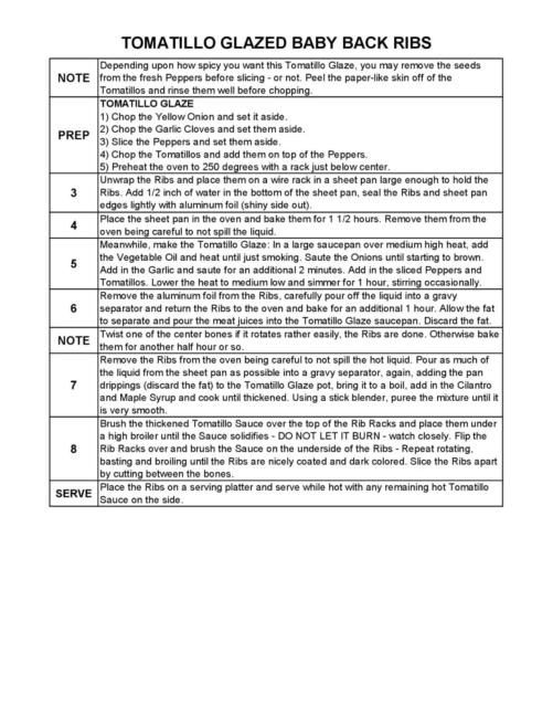 TOMATILLO GLAZED BABY BACK RIBS