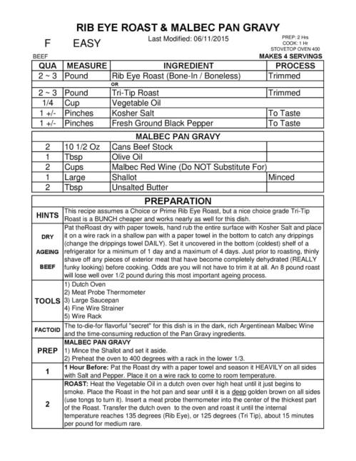 RIB EYE ROAST WITH MALBEC PAN GRAVY