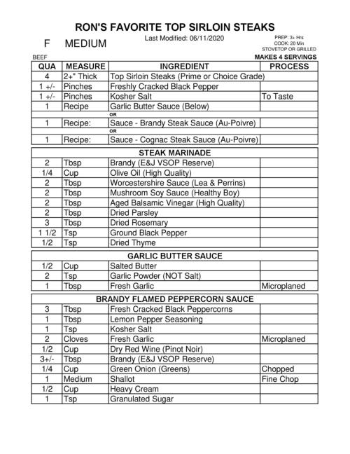 RON’S FAVORITE TOP SIRLOIN STEAKS