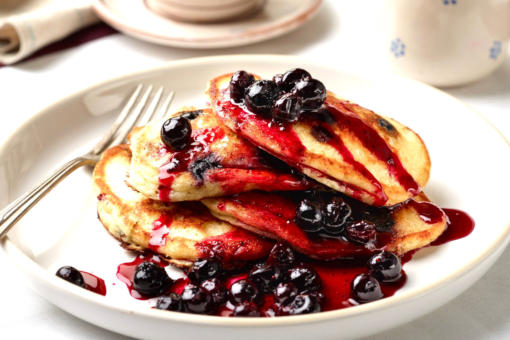BLUEBERRY HOTCAKES & FRESH FRUIT COMPOTE