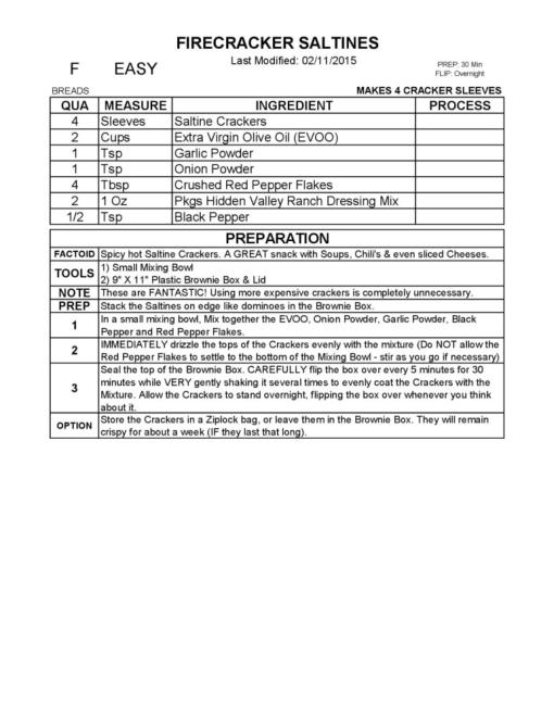 Spicy hot Saltine Crackers. A GREAT snack with Soups, Chili's & even sliced Cheeses.