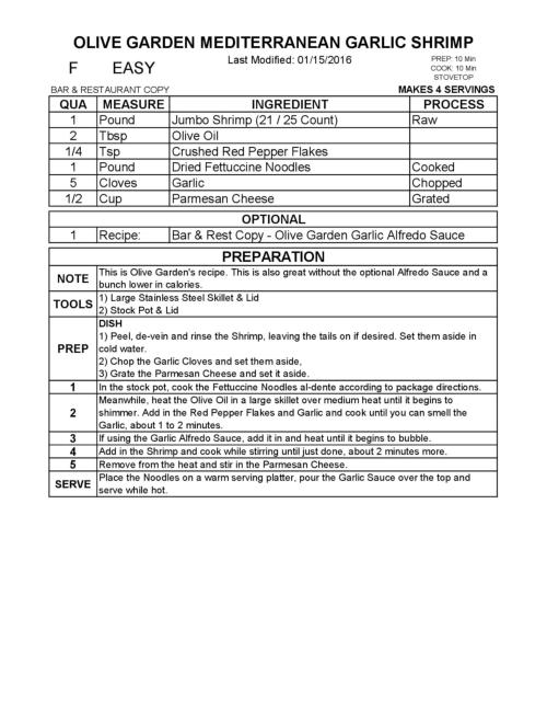 OLIVE GARDEN MEDITERRANEAN GARLIC SHRIMP