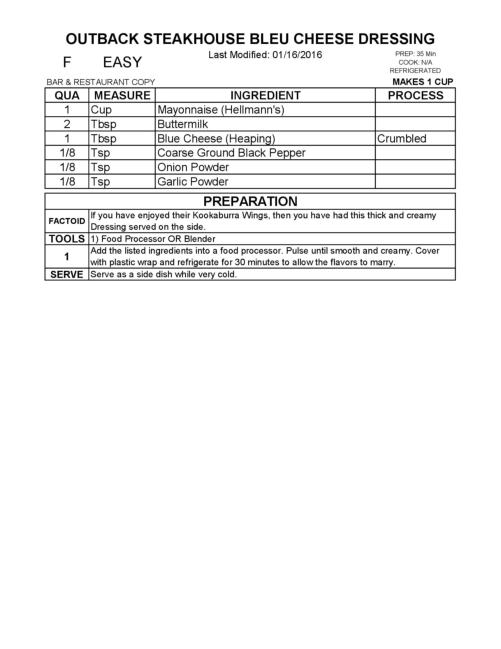 OUTBACK STEAKHOUSE BLEU CHEESE DRESSING