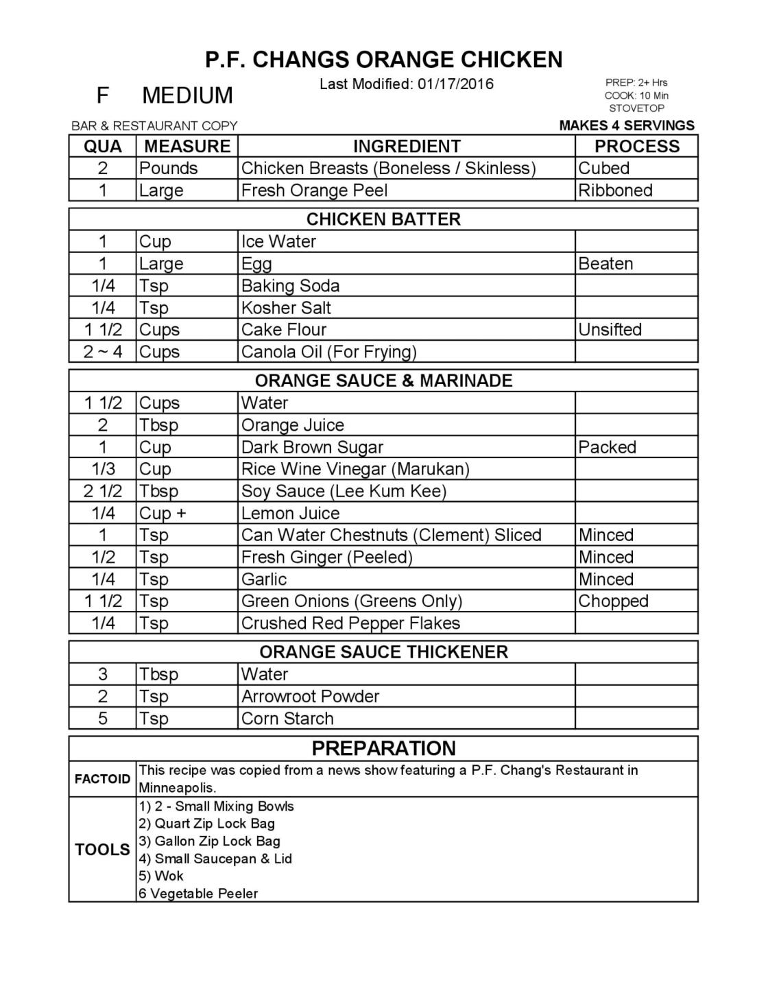 P.F. CHANG’S ORANGE CHICKEN