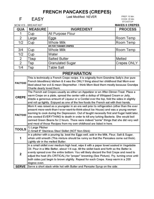 Grandpa Charlie dearly loved them. The French eat Crepes usually as either an