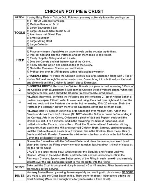 While this Recipe is using fresh Peas, Carrots and Corn, you may freely substitute ANY