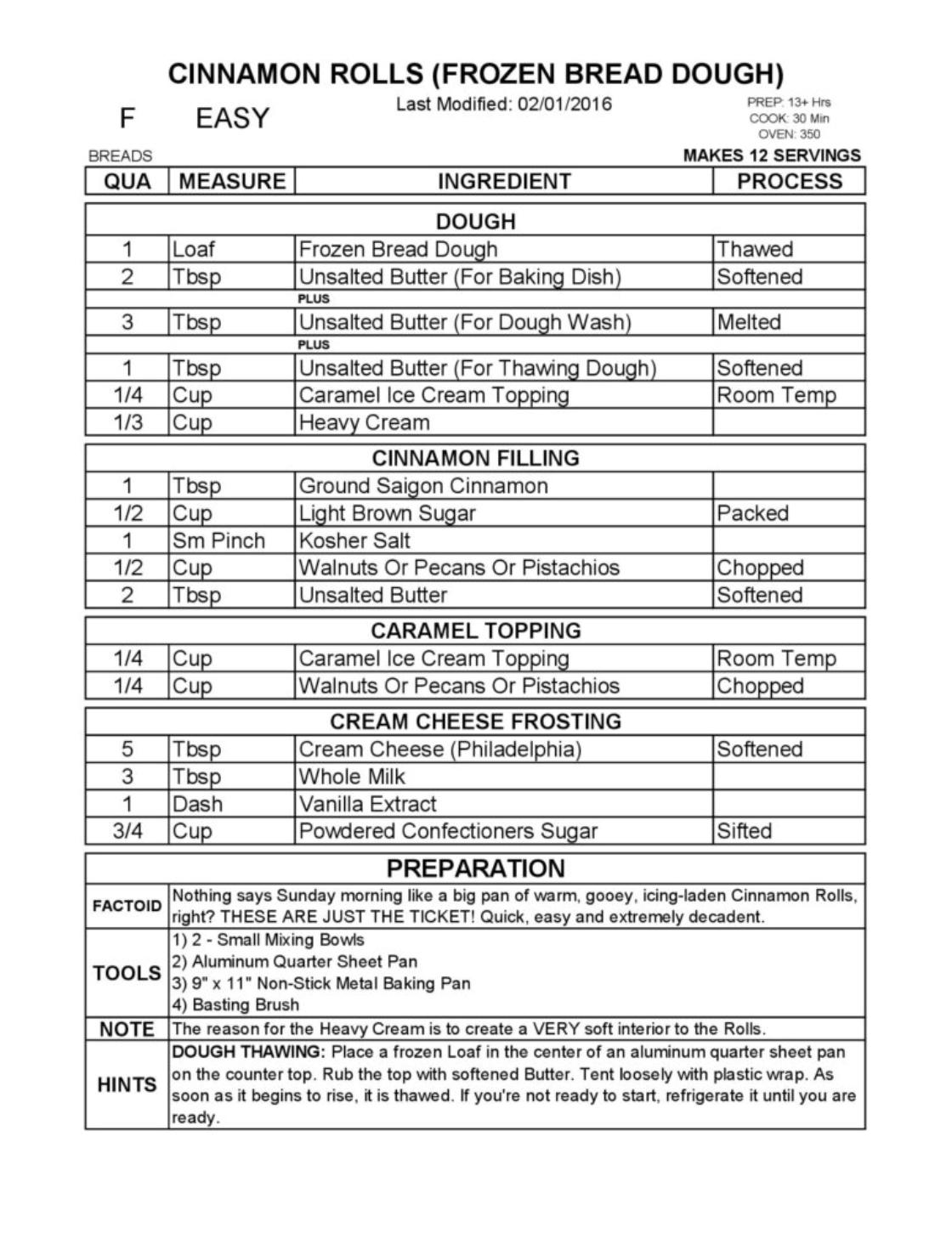 CINNAMON ROLLS (FROZEN BREAD DOUGH)