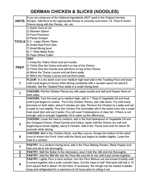 GOOD’N PLENTY GERMAN CHICKEN & SLICKS (NOODLES)