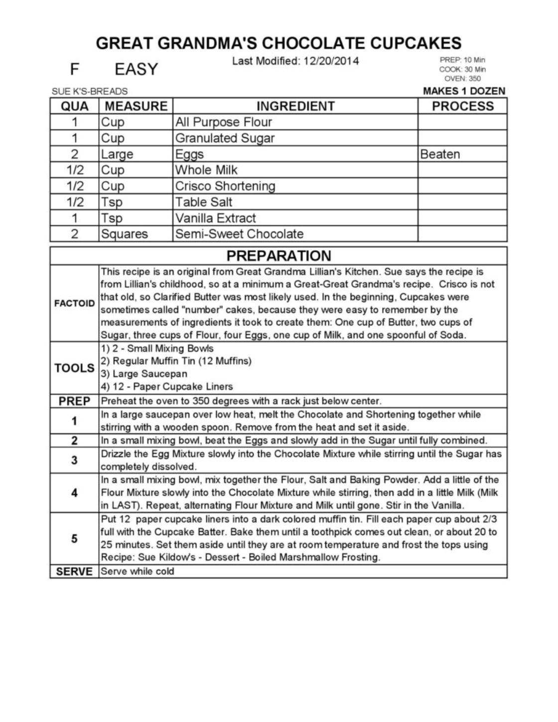 This recipe is an original from Great Grandma Lillian's Kitchen. Sue says the recipe is from