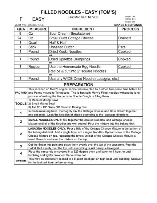 before he and Penny moved to Tennessee. This is basically Mom's Filled Noodles without