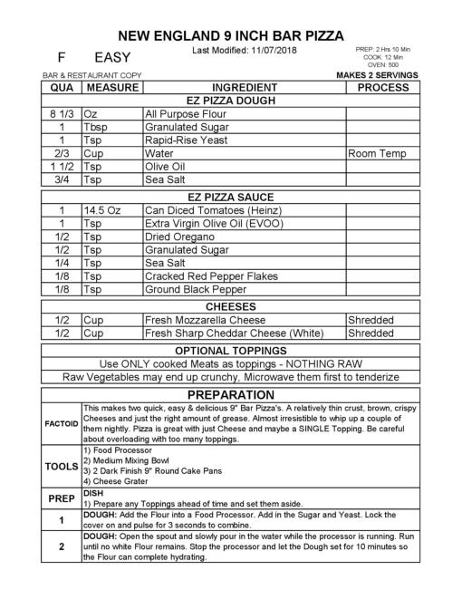 This makes two quick, easy & delicious 9" Bar Pizza's. A relatively thin crust, brown,