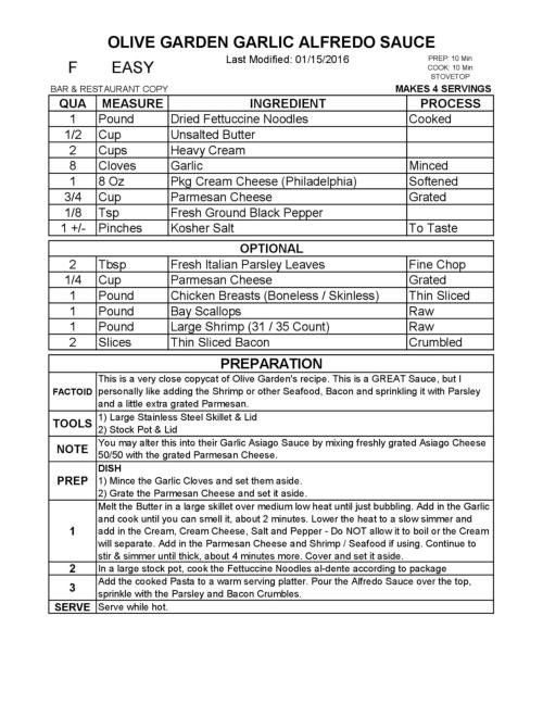 This is a very close copycat of Olive Garden's recipe. This is a GREAT Sauce, but I