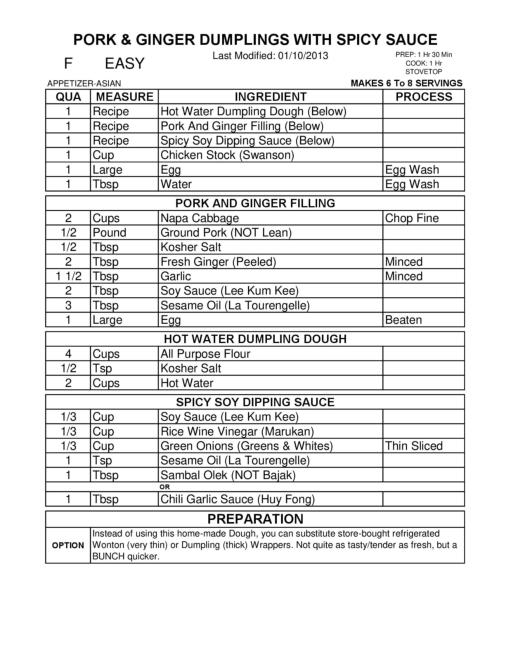 PORK & GINGER DUMPLINGS WITH SPICY SAUCE