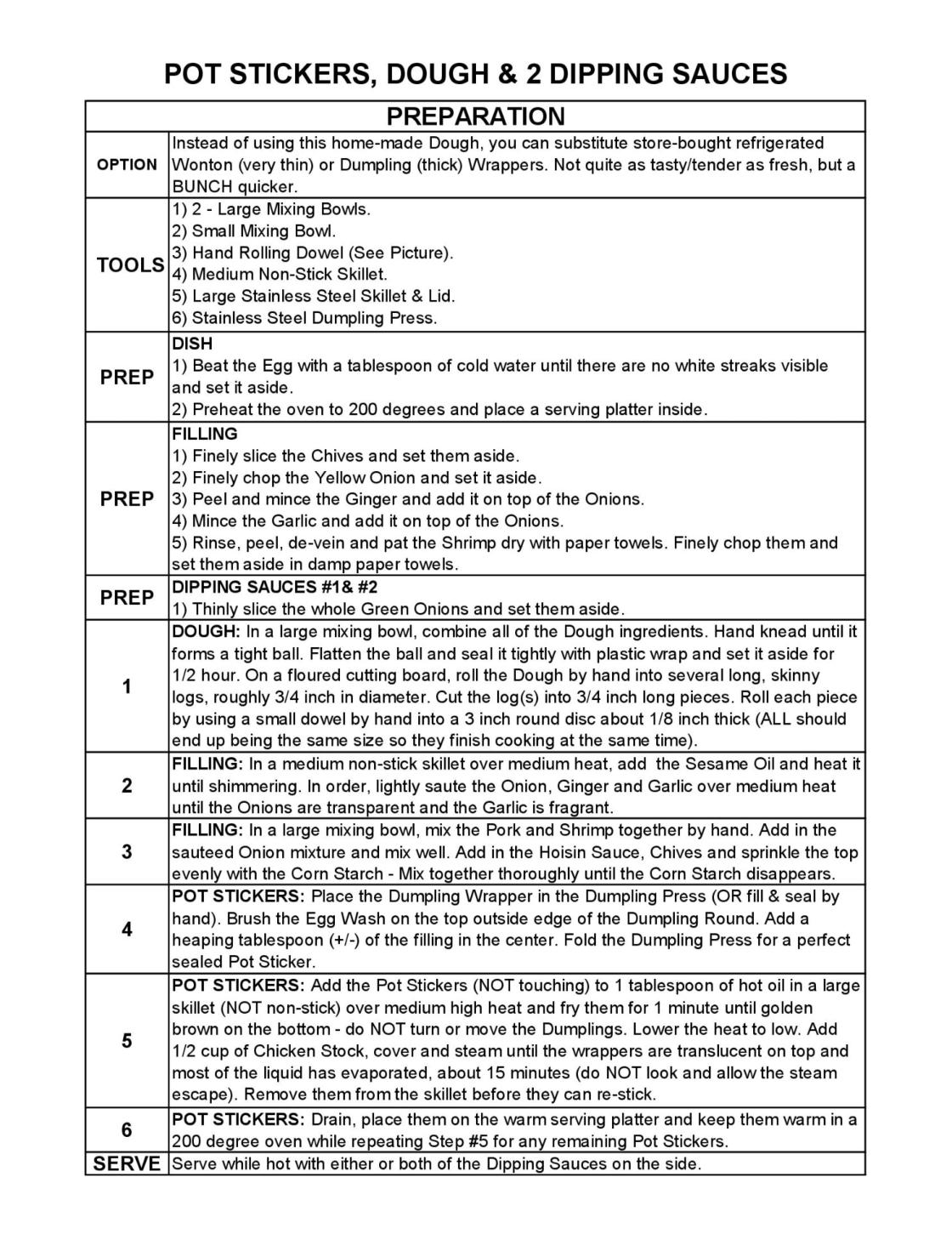 POT STICKERS, DOUGH & 3 DIPPING SAUCES