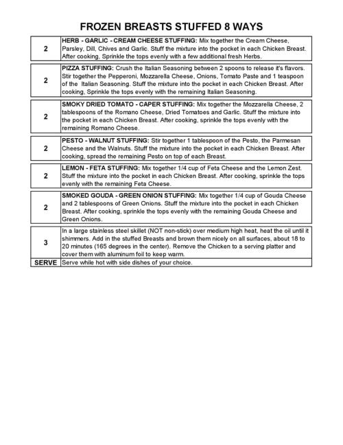 FROZEN BREASTS STUFFED 8 WAYS