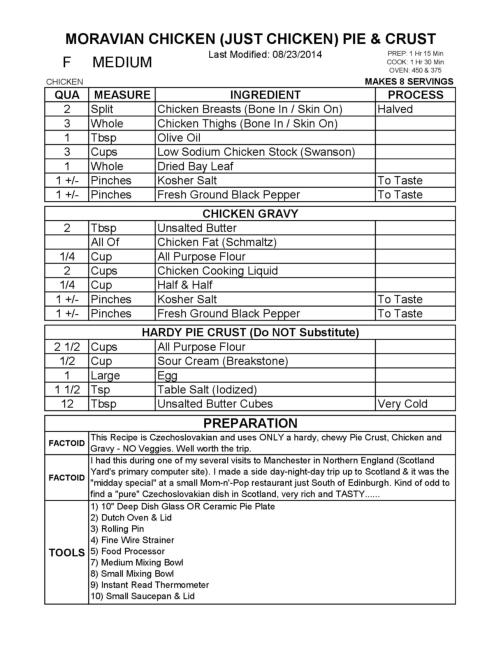 This Recipe is Czechoslovakian and uses ONLY a hardy, chewy Pie Crust, Chicken and