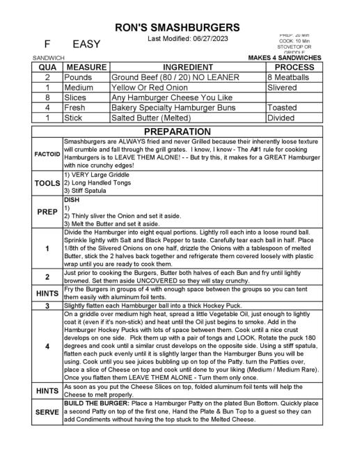 RON’S SMASHBURGERS