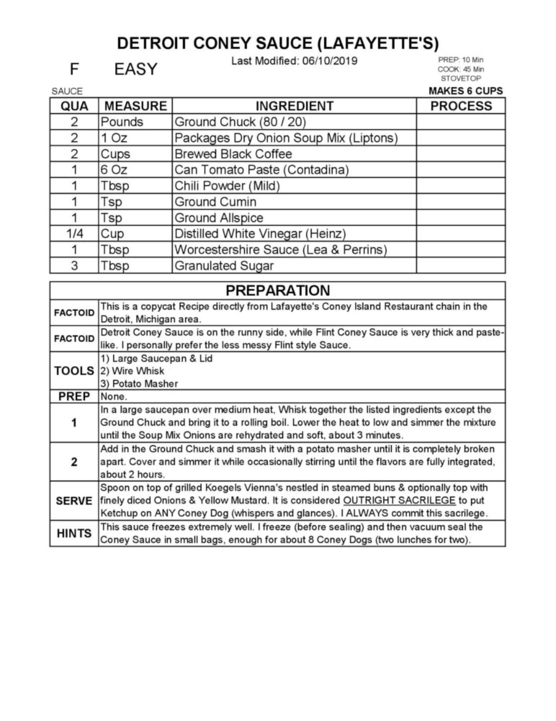 DETROIT CONEY SAUCE (LAFAYETTE’S)