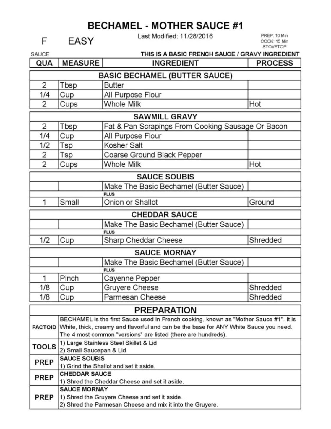 FRENCH MOTHER SAUCE #1 - 5 BECHAMEL SAUCES