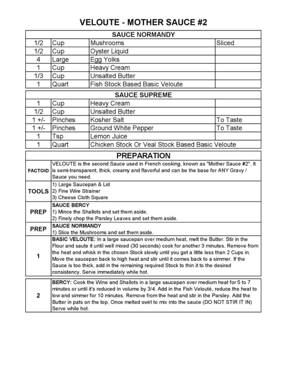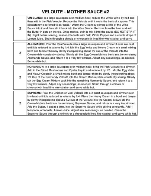 FRENCH MOTHER SAUCE #2 - 6 VELOUTE SAUCES