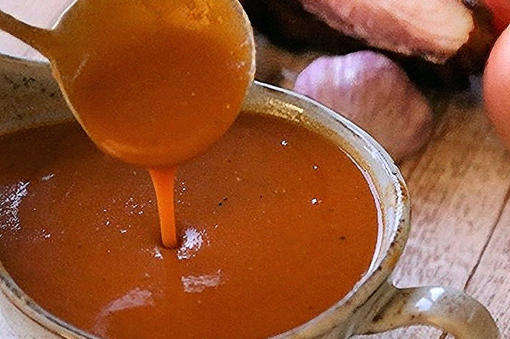 Brown, thick and flavorful and can be the base for ANY Dark Gravy or Sauce you need. The
