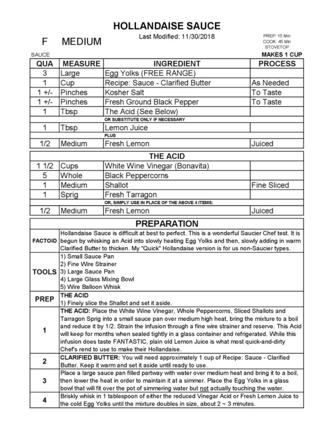 Hollandaise Sauce is difficult at best to perfect. This is a wonderful Saucier Chef test. It