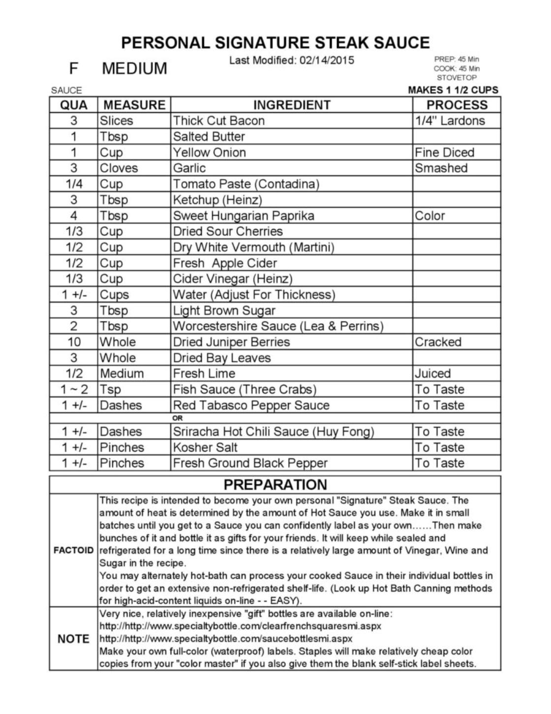 This recipe is intended to become your own personal "Signature" Steak Sauce. The