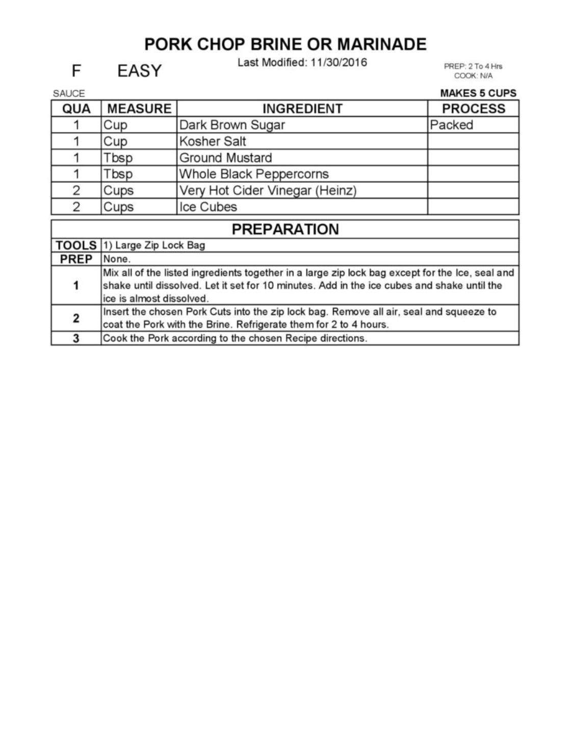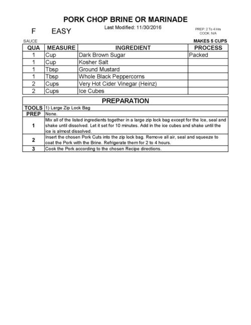 An excellent, nicely flavored Pork Chop or Steak Brine. It works equally well for Country