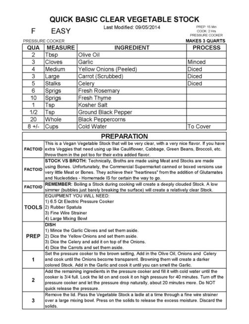 PRESSURE COOKER DIFFICULTY: EASY MAKES 3 QUARTS RECIPE PAGES: 2