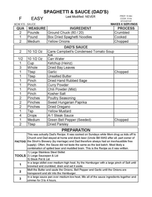 combination of spilled beer and muddled brain. This is the Recipe as it was written.