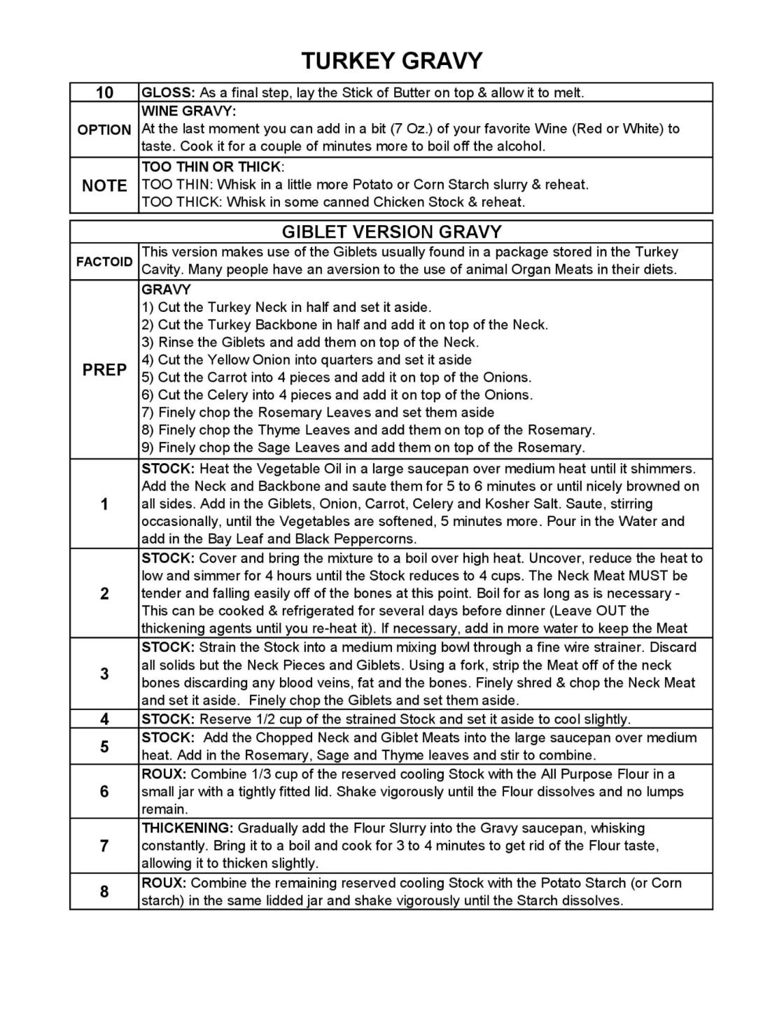 2) Giblet Meat & Neck Gravy Version.