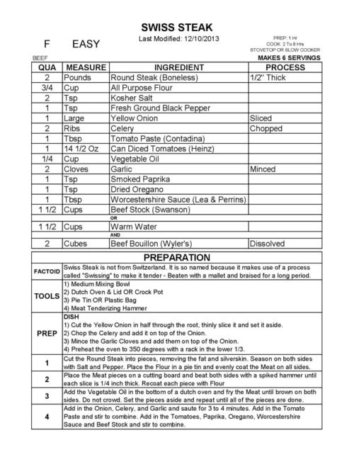 Swiss Steak is not from Switzerland. It is so named because it makes use of a process