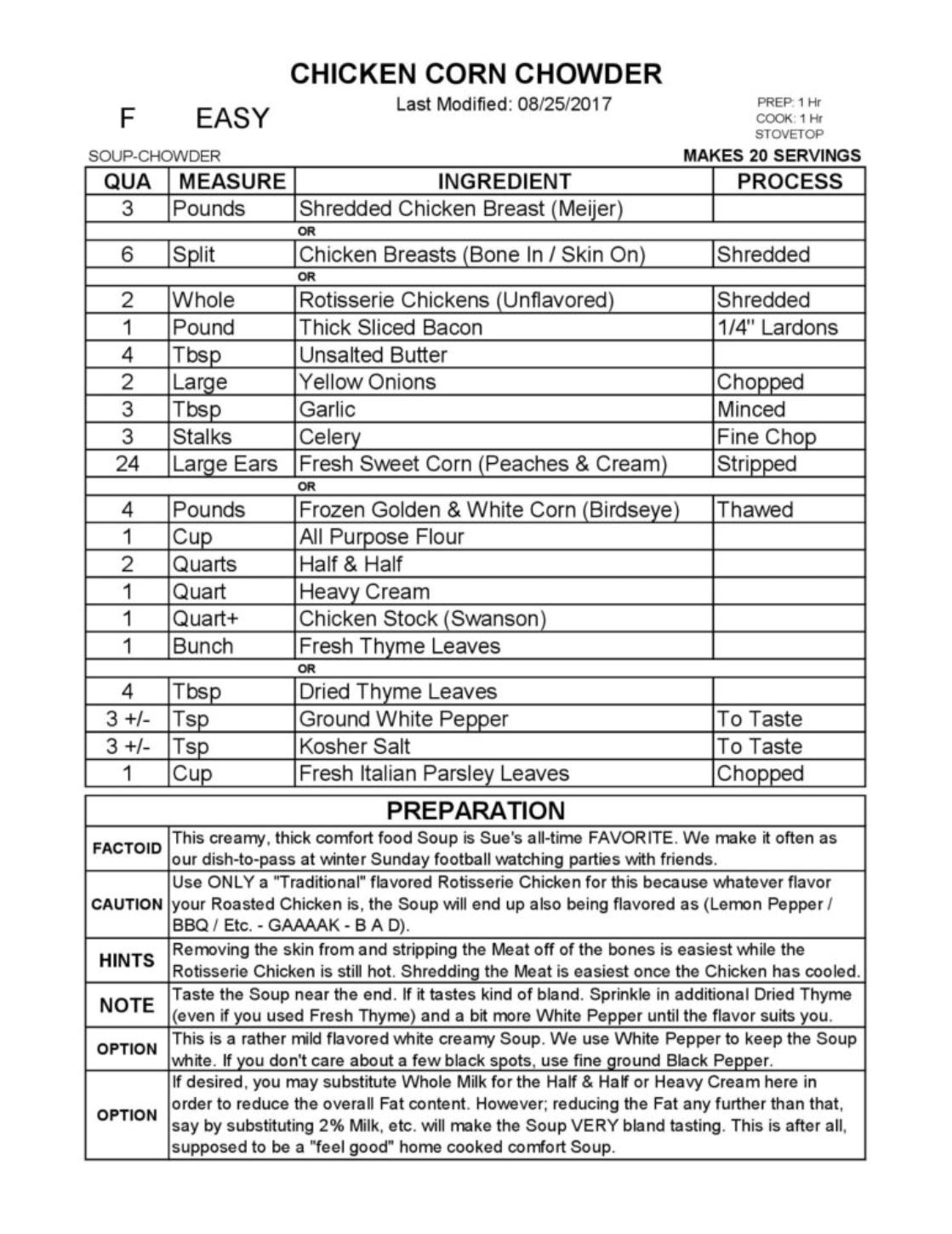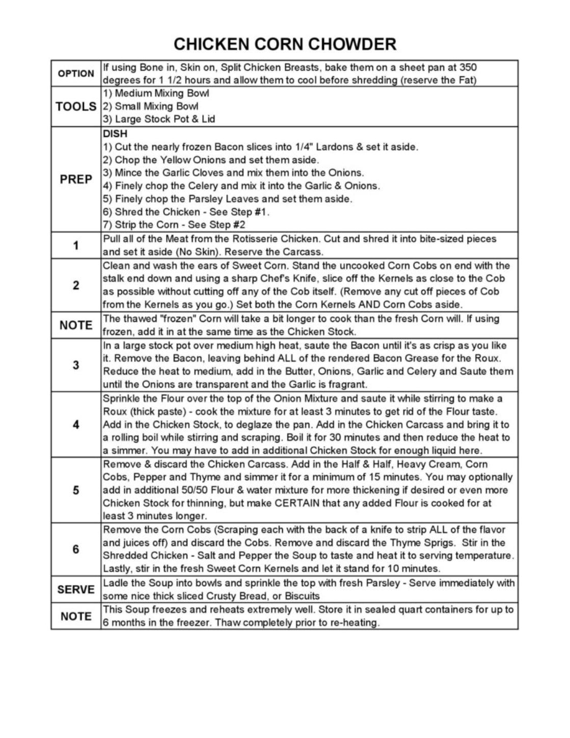 CHICKEN CORN CHOWDER