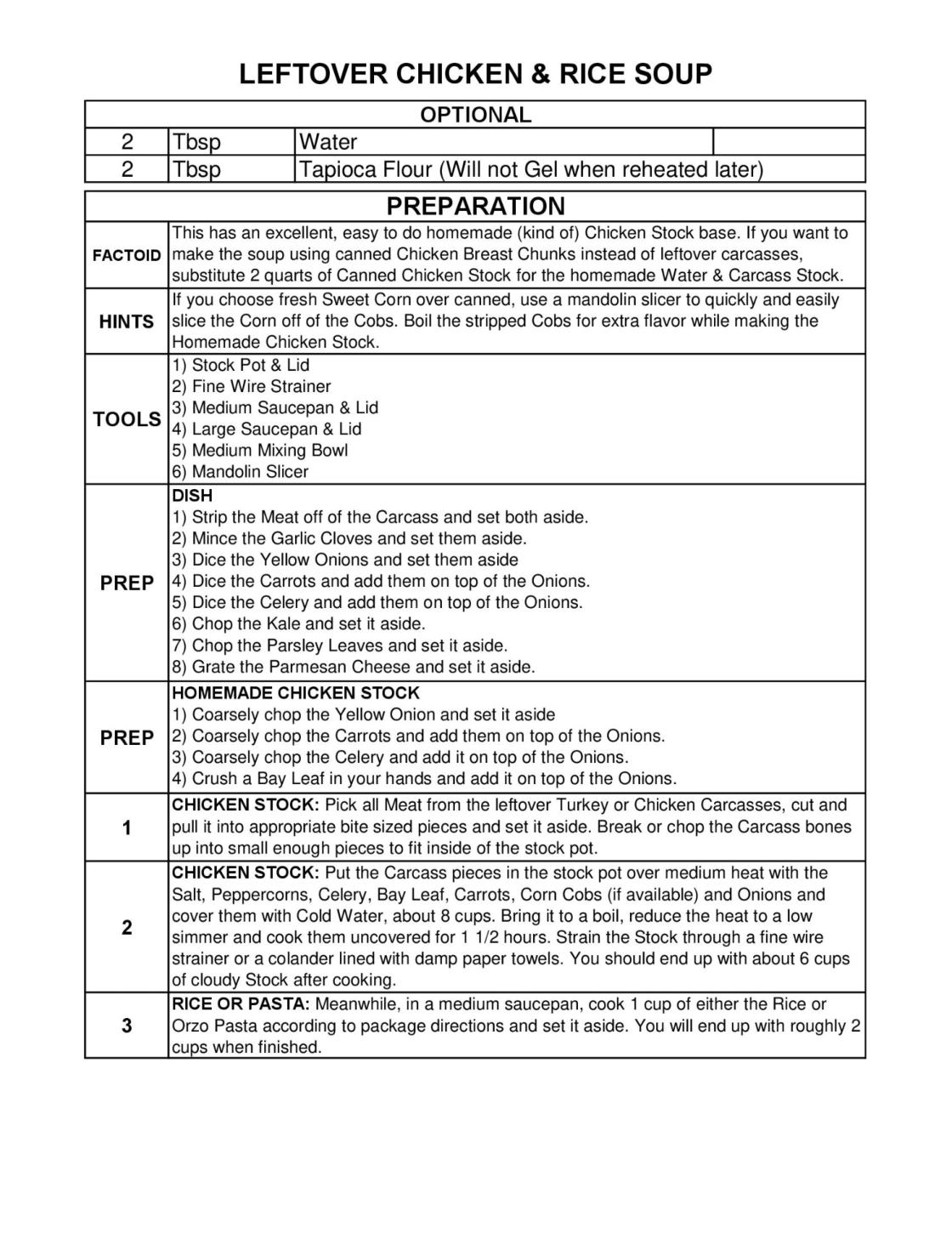 substitute 2 quarts of Canned Chicken Stock for the homemade Water & Carcass Stock. If