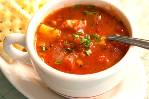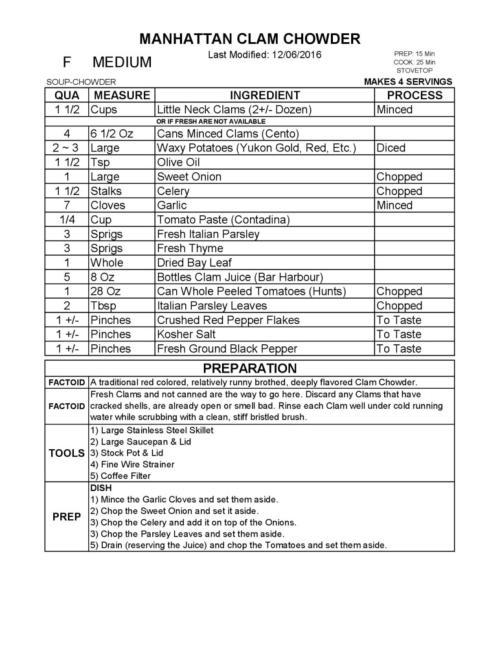 A traditional red colored, relatively runny brothed, deeply flavored Clam Chowder. Fresh