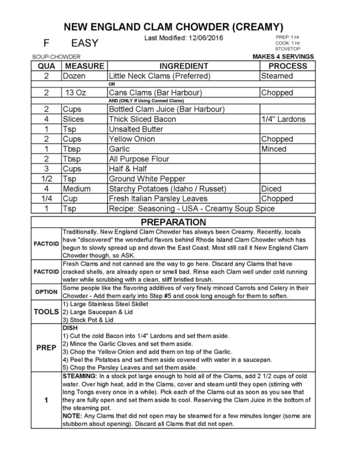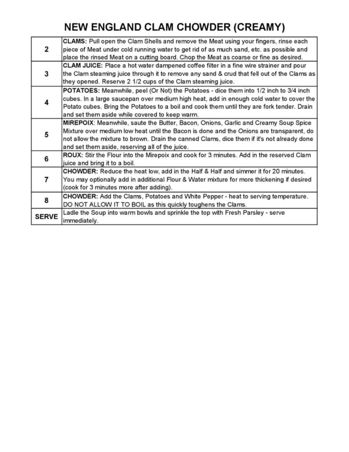 NEW ENGLAND CLAM CHOWDER (CREAMY BROTH)