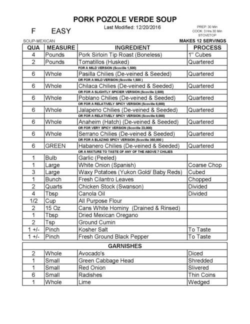 of Green Chilies. The Optional Garnishes are what sets this Soup aside from all of the