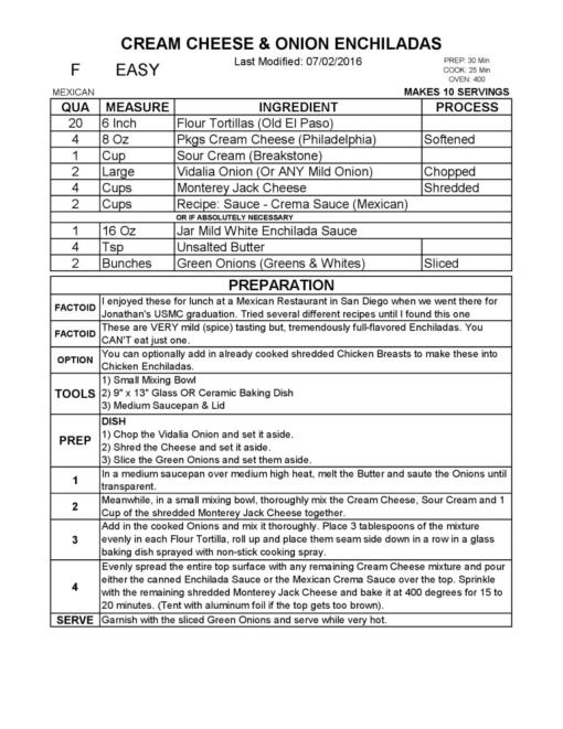 one. These are VERY mild (spice) tasting but, tremendously full-flavored Enchiladas.